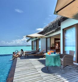 Their premium experience begins the moment you arrive. Make your way to your villa, either on the beach or atop the sparkling ocean, and you’ll find a fully stocked mini bar that’s replenished once per day – twice for ocean suites and residences, which also benefit from a fully stocked wine cellar and a complimentary bottle of Champagne.