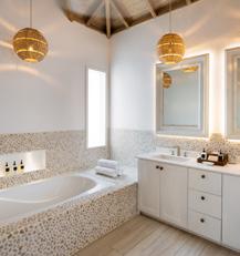 Curtain Bluff is beloved with guests for the laid-back luxury it offers, as well as its exciting range of facilities and activities. Two beaches and a private dock beckon you for watersports including snorkelling and sailing, all of which are included in your room rate. Then there’s tennis, squash and pickleball on land, and classes at the newly updated fitness centre as well as the adults-only Wellness Area which features a yoga pavilion and infinity pool. Relaxation is guaranteed too – when you’re not resting in a hammock, spend some time at the awardwinning Spa at Curtain Bluff with a massage, body polish or aromatherapy wrap before decompressing in the cliffside tub.