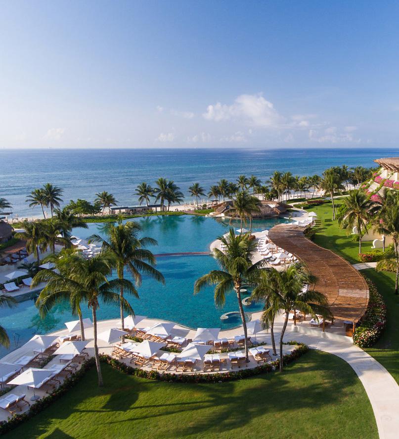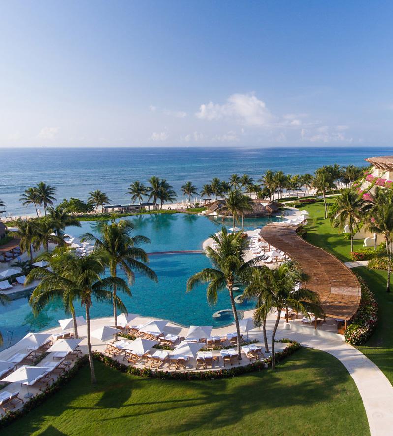 Set between powder-soft sands and a lush jungle backdrop, Grand Velas Riviera Maya delivers an extraordinary allinclusive experience where indulgence is second nature. This award-winning resort seamlessly balances family fun and romantic seclusion with three distinct ambience. The Ambassador area is perfect for families, with spacious suites and a lively atmosphere. Zen Jungle offers a tranquil escape surrounded by tropical foliage, while Grand Class provides beachfront serenity designed for adults.