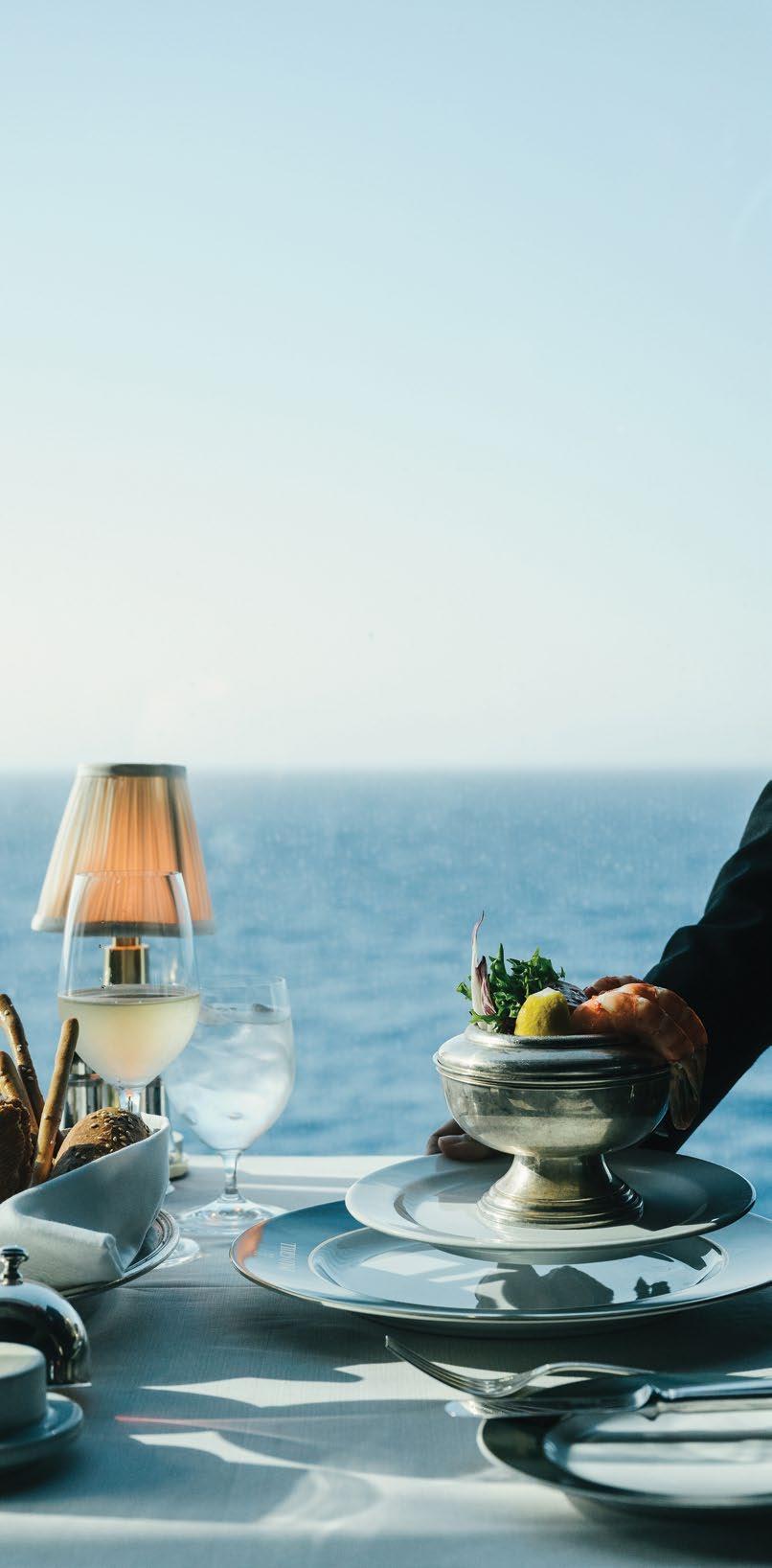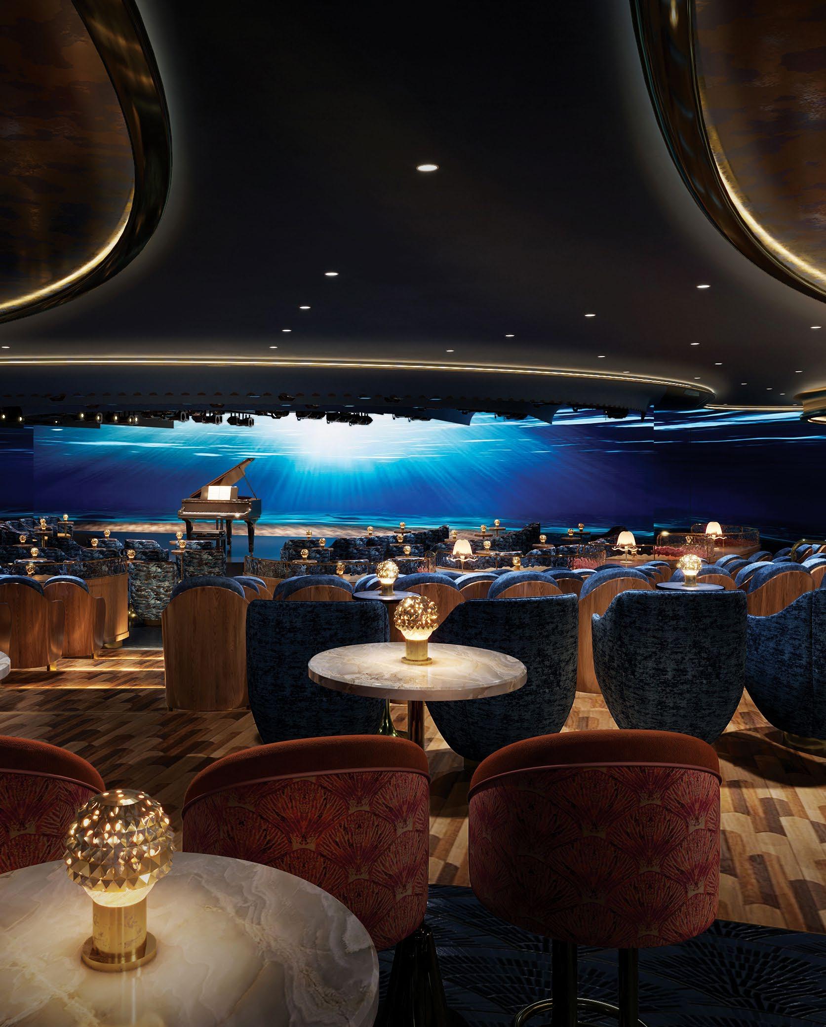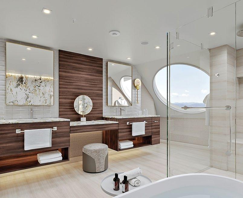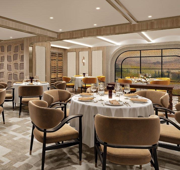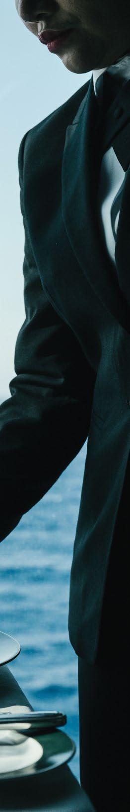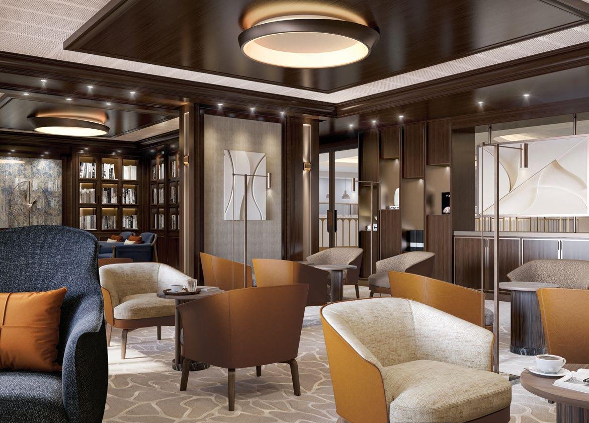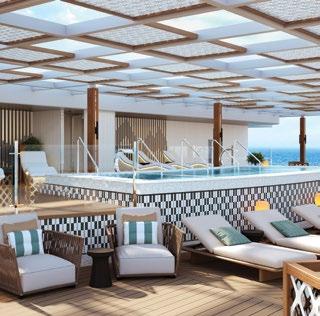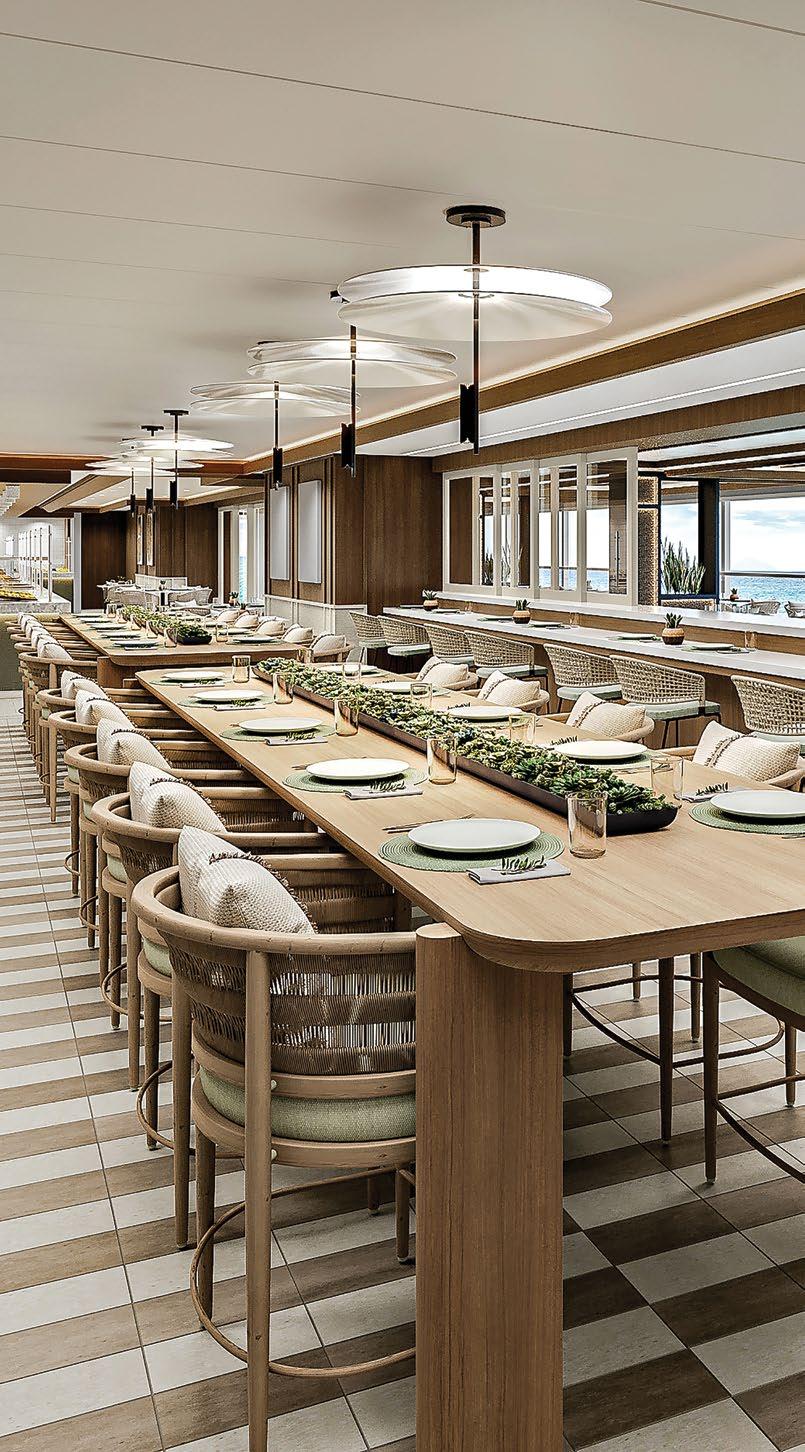 The most distinctive feature of aptly named Horizons is the lounge’s dramatic floor-toceiling windows, offering 180 degrees of stunning vistas. This space celebrates the journey by providing a unique perspective on the alluring destinations that await ashore and the seas that carry you to what lies ahead.