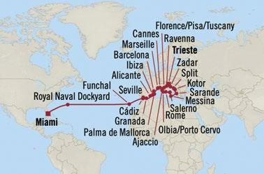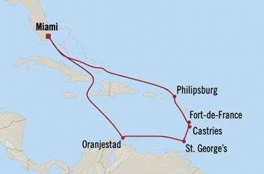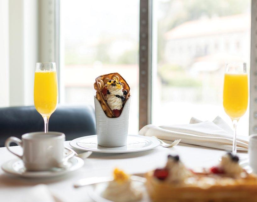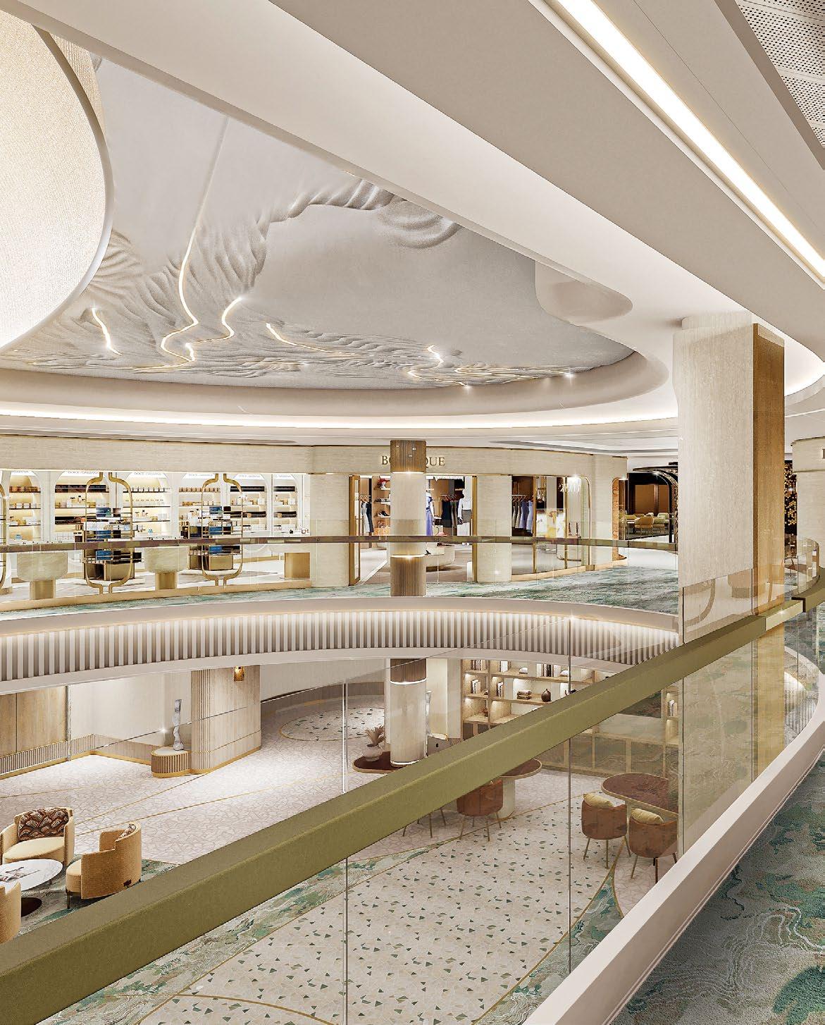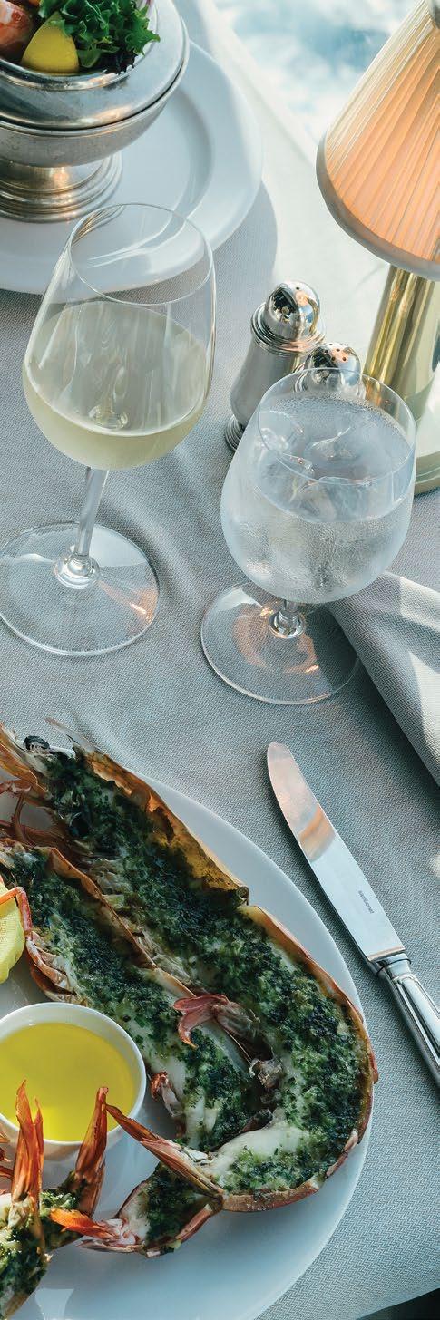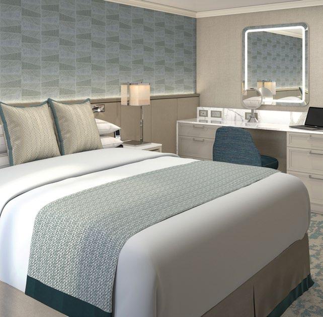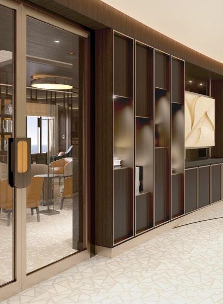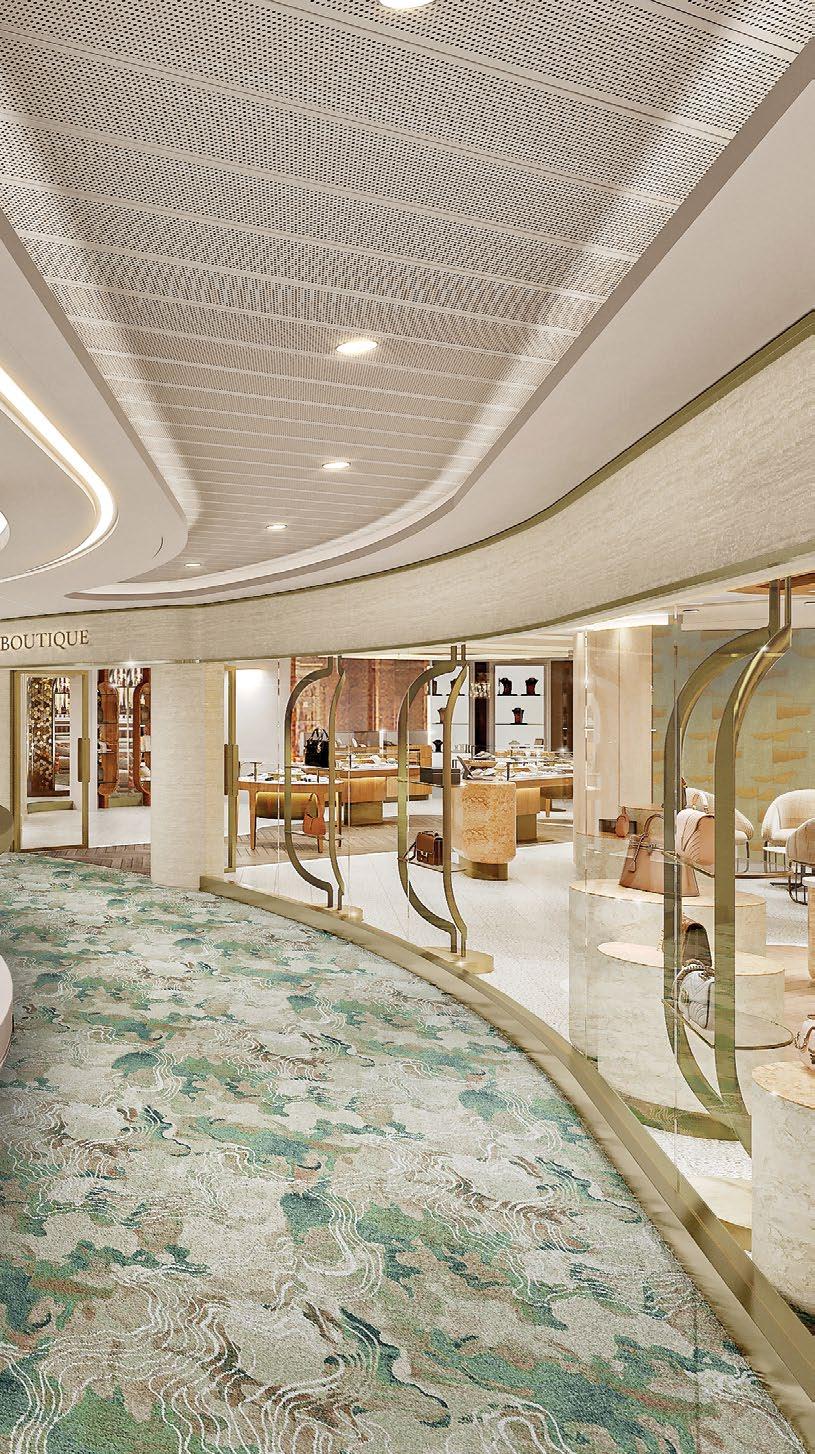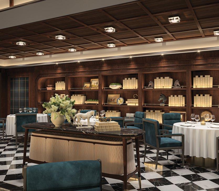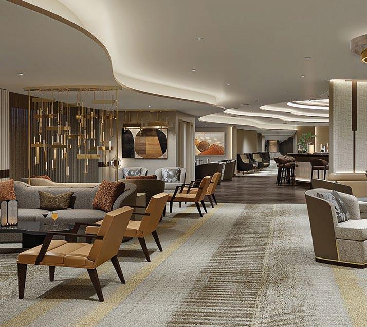 The most distinctive feature of aptly named Horizons is the lounge’s dramatic floor-toceiling windows, offering 180 degrees of stunning vistas. This space celebrates the journey by providing a unique perspective on the alluring destinations that await ashore and the seas that carry you to what lies ahead.