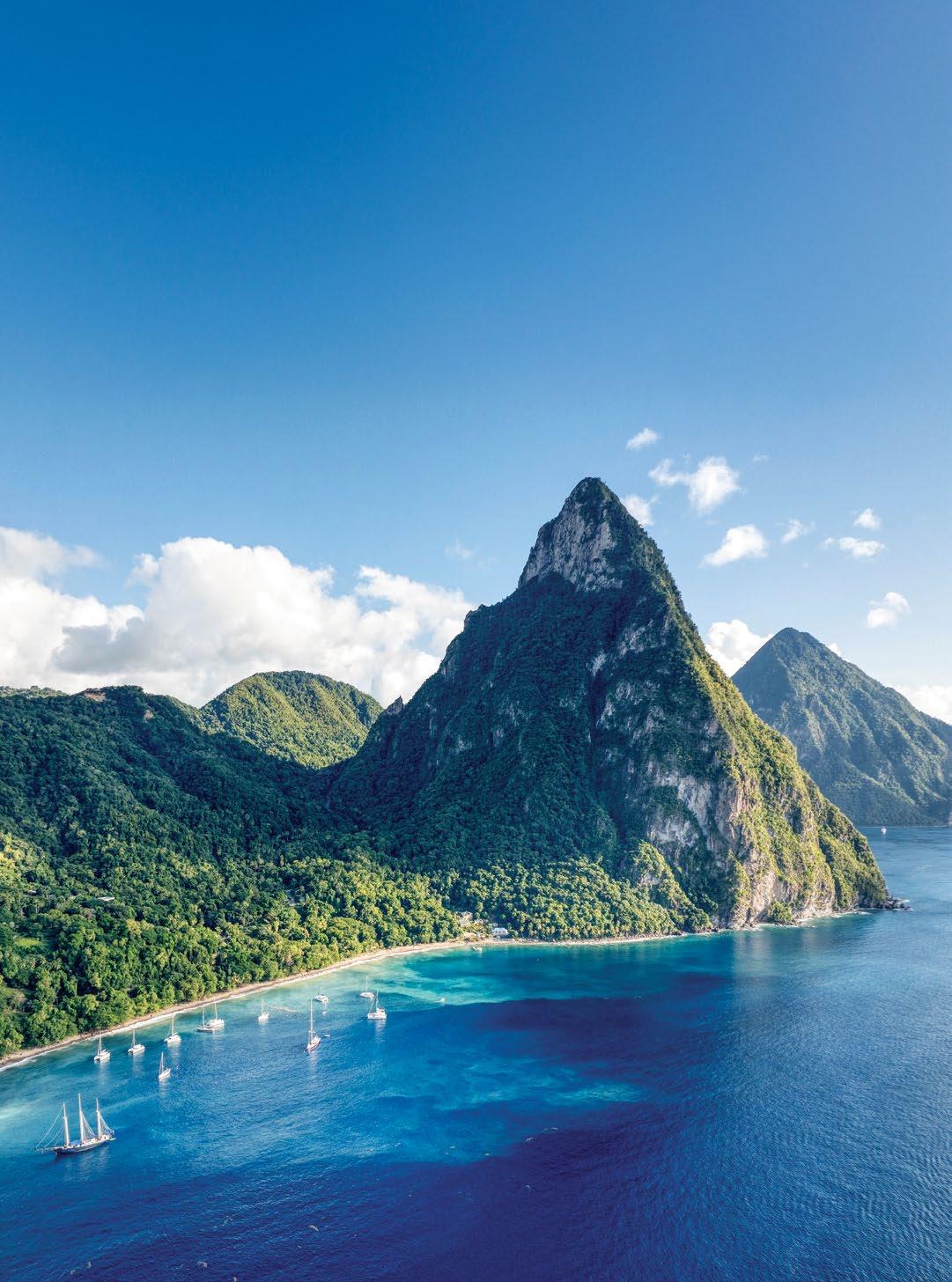 Defined by its volcanic peaks, lush rainforests and blacksand beaches, St. Lucia blends natural beauty with a vibrant Creole culture.