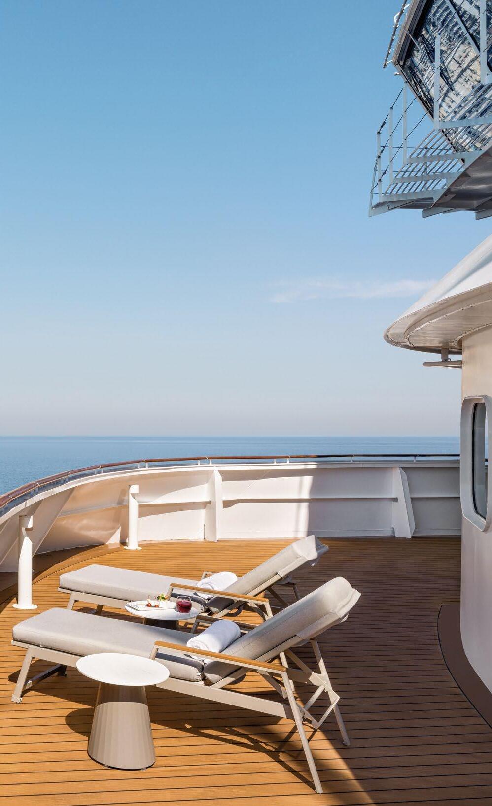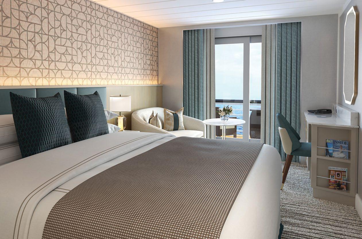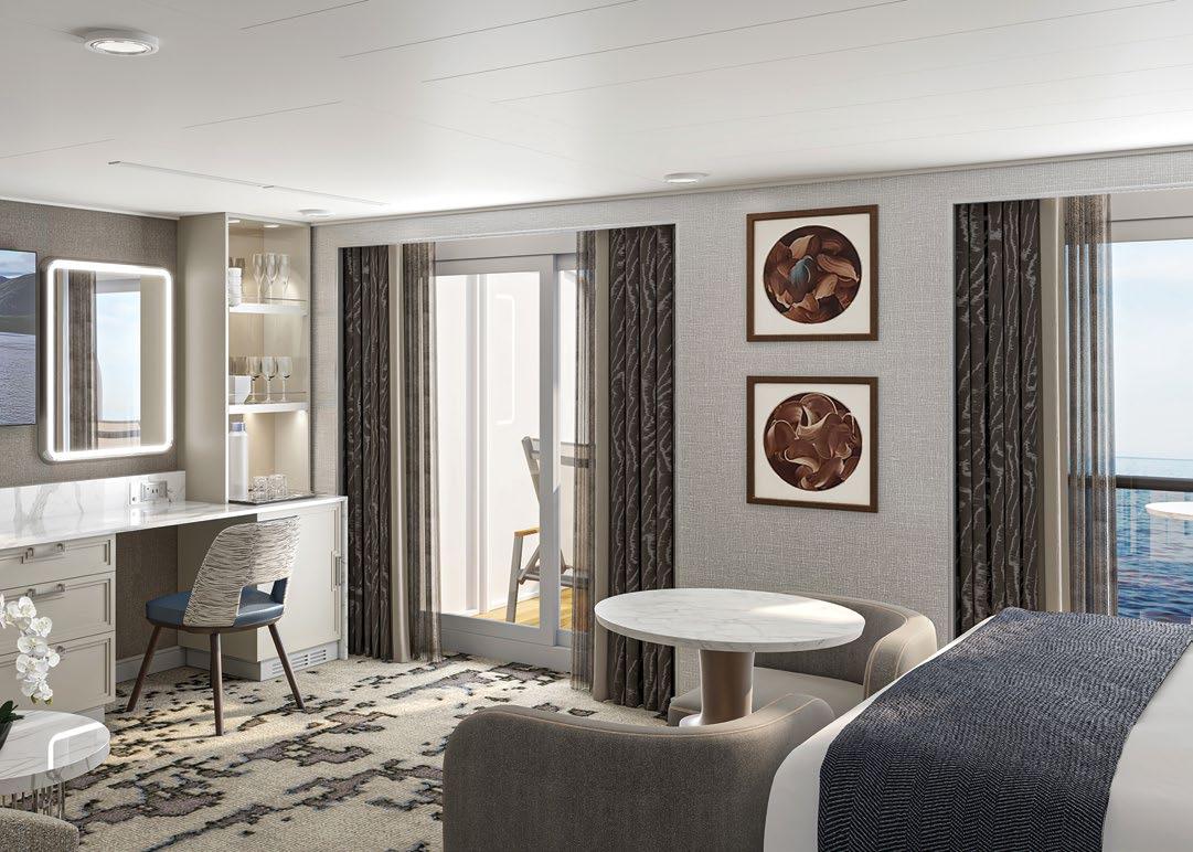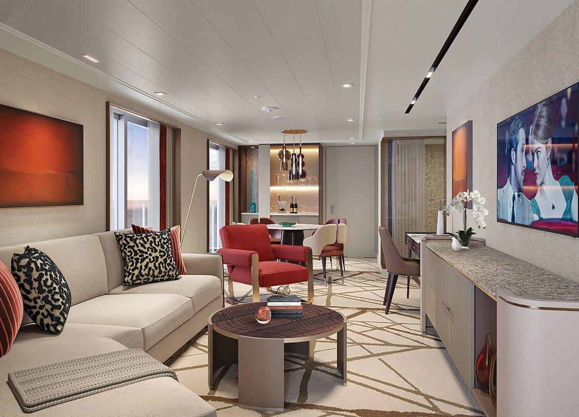 SUMMER 2025: Ship’s capacity is finalized at 1,390 guests. Owner’s Suites expanded to two bedrooms. Two new categories of suites added.