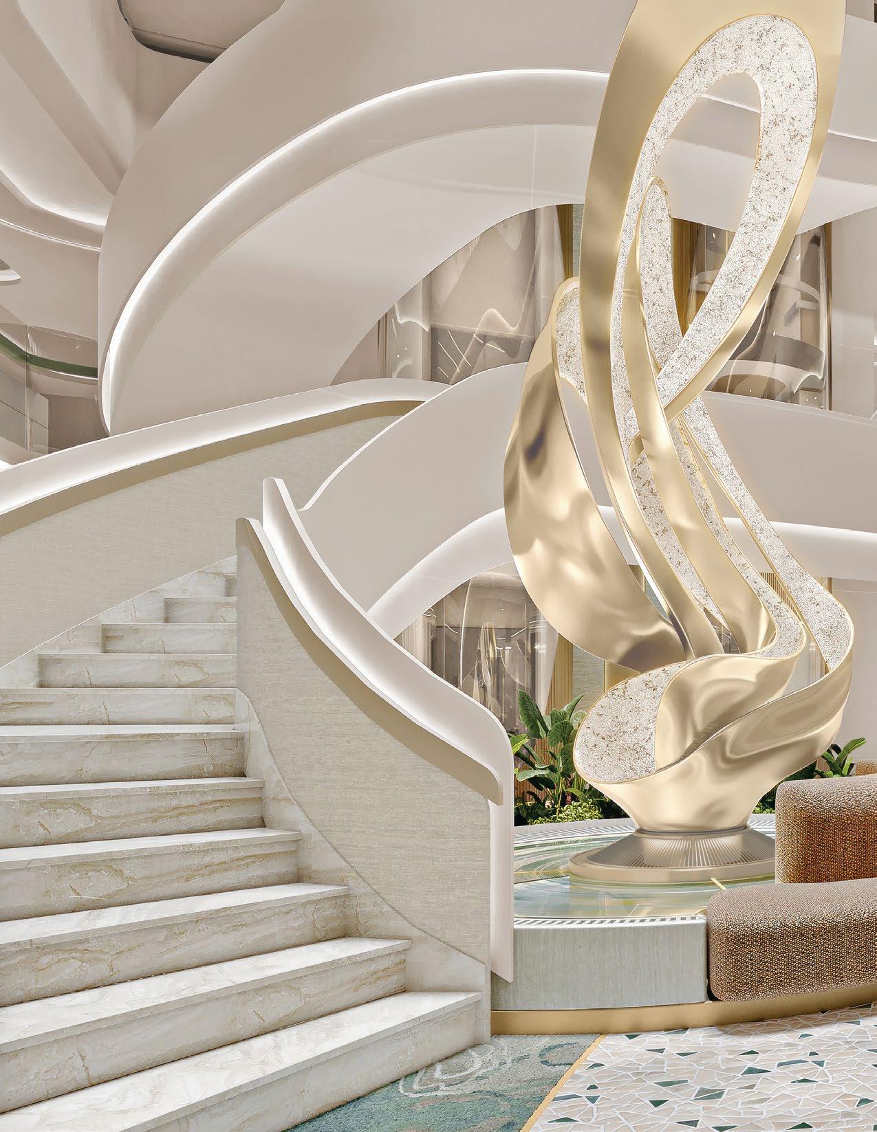 quo daily,” Dahlgren says, referring to the hundreds of team members – from interior designers to naval architects – working in unison to bring the vessel to life.
