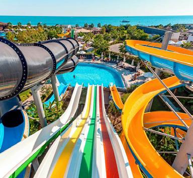 • Onsite aquapark, mini theme park, children’s club, pool, splash park & playground