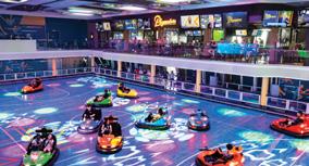 Descend swiftly through the ship from deck 20 to deck 8 on the longest dry slide at sea, The Venom Drop, enjoy the on board bumper cars and roller blades, and immerse yourself in the Video Arcade!