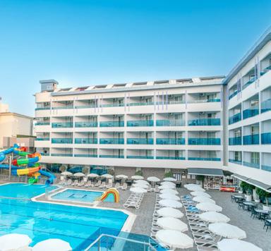Just metres away from the beautiful beach, this hotel provides a memorable holiday for both families and couples. Whilst you soak up the glorious Turkish sunshine by the spacious pool area, the kids can whizz down the waterslides or enjoy the fun-filled kid’s club. In need of some relaxation? The on-site spa is the place to unwind. The real belle of the ball is the private beach area with a hotel beach bar to boot.