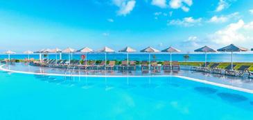 Nestled alongside a sandy beach with stunning views across the Aegean Sea, this beautiful hotel offers a serene escape infused with warm Greek hospitality. Spend your days by the pool with a cocktail in hand, and delight in beachfront dining while you soak up the views by day and spectacular sunsets in the evening.
