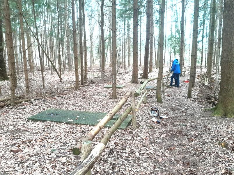 Een aantal beschadigde palen en borden zijn vervangen. Bij de V 1 locatie in het Nijreesbos zijn een aantal kapotte “sleetjes” vervangen.