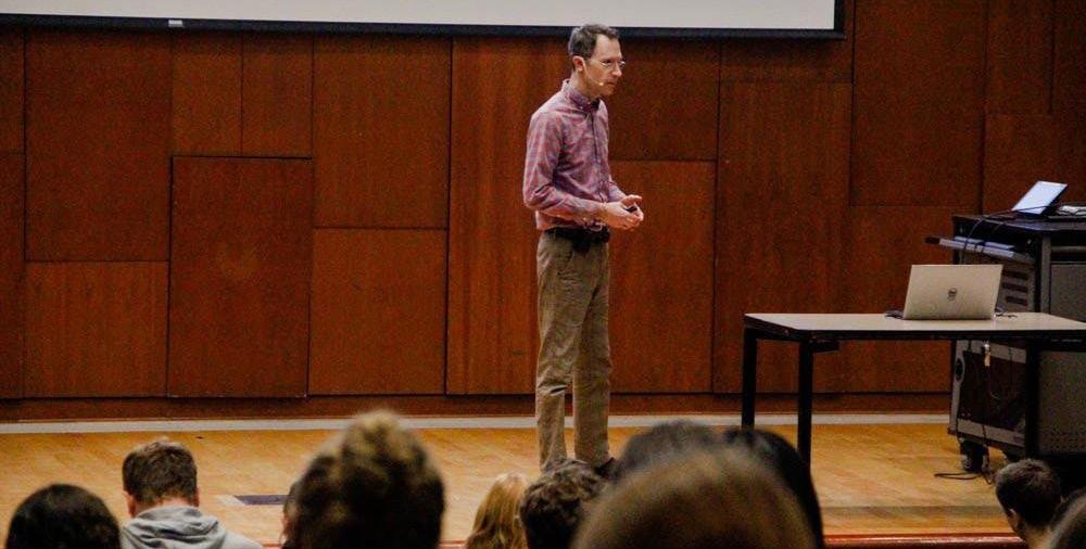 Professor of Epidemiology William Goedel spoke at a Monday talk