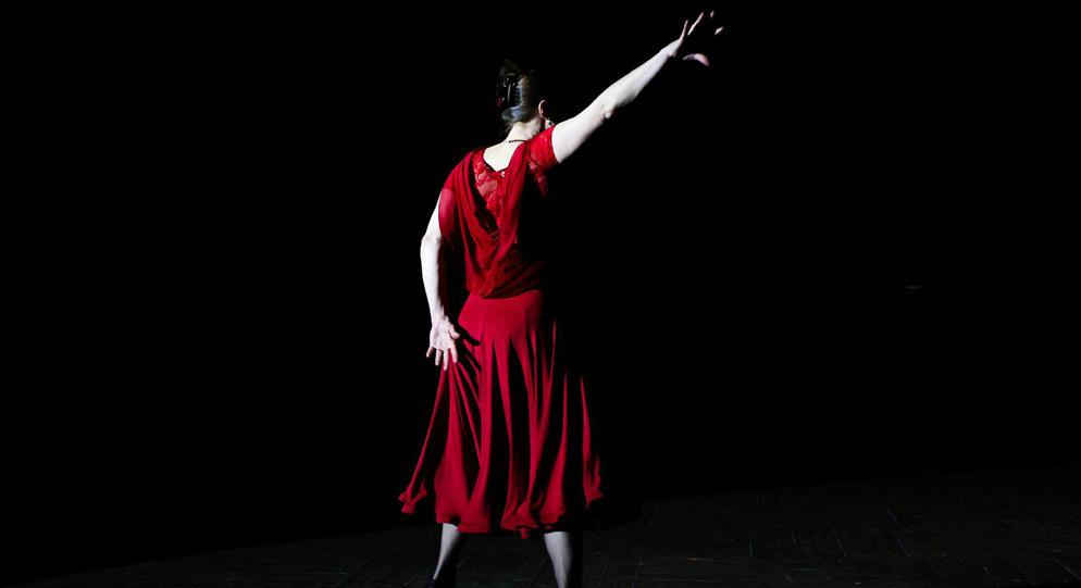 After a brief intermission, Laura Colella, an assistant professor of the practice in literary arts, performed a rumba and swing with Korbin Johnson, a community member who is in the BBDT. Basu noted the contrast in their performance between the “gentle intimacy” of the first segment and the “explosion of joy and exuberance” of the second.