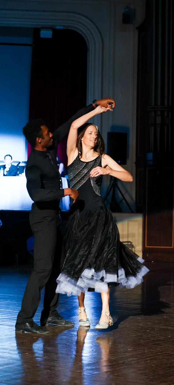 Ian Chow ’28 and Associate Professor of Engineering Kareen Coulombe performed the Paso Doble, a Latin ballroom dance that mimics the theatrics of a bullfight.