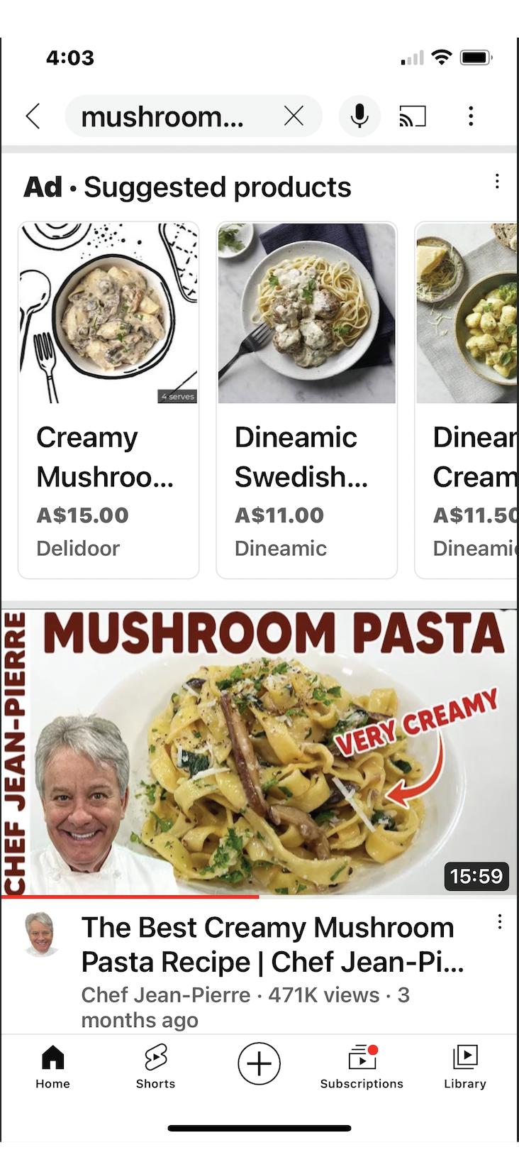 Influenced by the Youtubers that Person X is subscribed to, Person X goes to specialty stores such as Costi’s Fresh Seafood and Miracle to purchase specific ingredients that are suggested by the influencers.