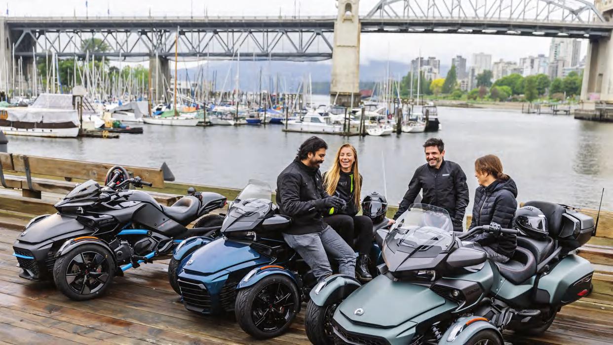 © 2022 Bombardier Recreational Products Inc. (BRP). All rights reserved. ®, TM and the BRP logo are trademarks of BRP or its affiliates. † BLUETOOTH is a registered trademark of Bluetooth SIG. CORDURA and the CORDURA logo are trademarks of INVISTA. Clim8® is a registered trademark of clim8 SAS. CLARINO is a trademark of Kuraray Co. Ltd. FOX and PODIUM are trademarks of FOX Racing Canada. iPOD and iOS are registered trademarks of Apple Inc. Android is a trademark of Google LLC. Windows is a trademark of Microsoft Corporation. PANDORA is a registered trademark of PANDORA MEDIA, LLC. BV. N-COM SYSTEMS and NOLAN are registered trademarks of Nolan Helmets S.p.A. NGK is a registered trademark of NGK Spark Plugs Ltd. RAM is a registered trademark of RAM Mounting Systems Inc. SENA is a trademark of Sena Technologies, Inc. SILICONE is a registered trademark of Dow Corning Corporation. VELCRO is a registered trademark of Velcro Industries. Hijiua is a registered trademark of Hijiua Batteries Inc. Brembo Brake Systems is a registered trademark of Brembo S.p.A. GARMIN and ZUMO are trademarks of Garmin Ltd. AKRAPOVIČ EXHAUST SYSTEM TECHNOLOGY is a registered trademark of Akrapovič d.d. SHAD is a trademark of NAD S.L. CYCLOPS is a trademark of CyclopsGear. RoadThunder and MTX are registered trademarks of MTX Audio. KYB is a trademark of KYB Corporation. SACHS is a trademark of ZF FRIEDRICHSHAFEN AG. SLOWTIDE is a trademark of Slowtide LLC. All other trademarks are the property of their respective owners. BRP reserves the right to discontinue or change specifications, prices, designs, features, models or equipment without incurring obligation. Some models depicted may include optional equipment. Vehicle performance may vary depending on weather, temperature, altitude, riding ability and rider/passenger weight. Always pay careful attention to the road and do not use BRP Connect features under conditions that will affect your safety or the safety of others. This technology is not a substitute for attentive driving and it requires compatible device, operating system, and mobile apps. Prices, if shown, are based on Manufacturer Suggested Retail Prices. Dealers may sell for a different price. For Canada and U.S., taxes are not included. Depending on location, products are distributed by BRP US Inc., Bombardier Recreational Products Inc., BRP