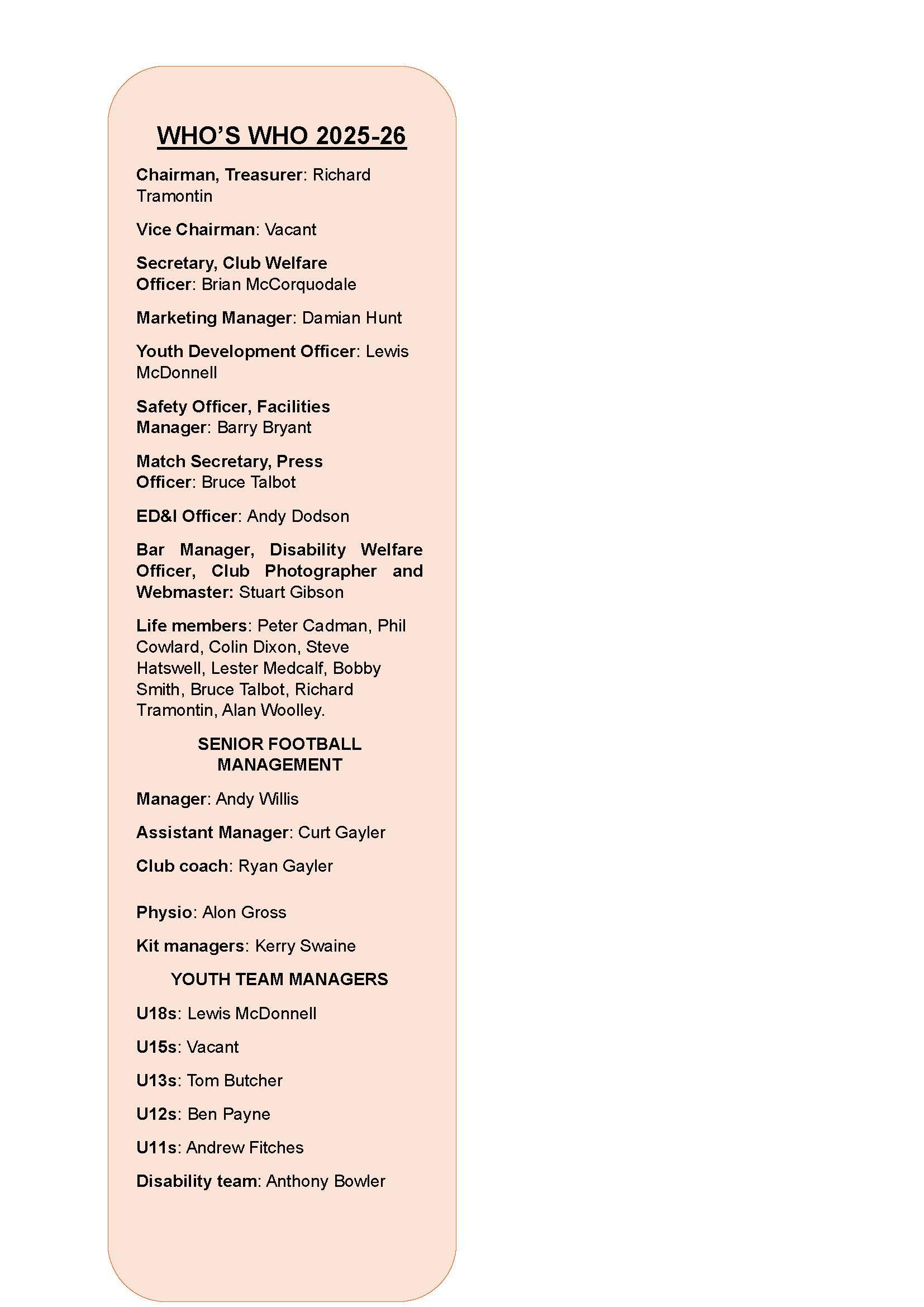 Matt Longhurst’s team manager notes started with the good news that our previous Saturday’s 2-2 draw at home to Chatham meant that, with five games still to play, we now had enough points to avoid relegation. Later in the programme we have a brief match report (plus some action photos) of that Chatham match. The match had seen Marcus Elliott scoring two first-half goals - and so we were a little disappointed that we couldn’t hold on to that lead in the second half. Chatham had scored an early goal and then, a couple of minutes from the end, they converted a penalty which we thought had been given rather harshly.