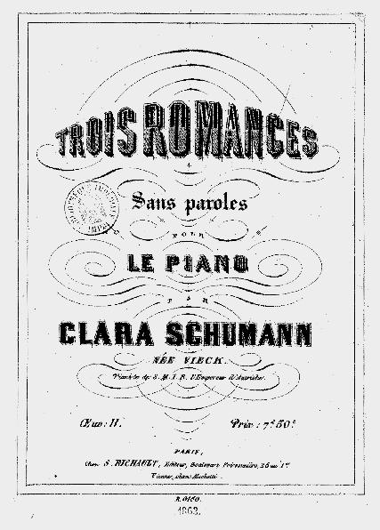Titelseite der „Trois Romances sans paroles“ von Clara Schumann