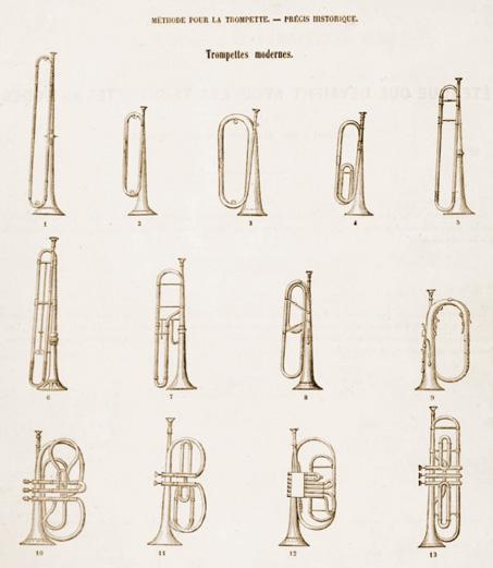 Entwicklungsstadien der Ventiltrompete in FranÇois Georges Auguste Dauvernés Méthode pour la trompette, 1857