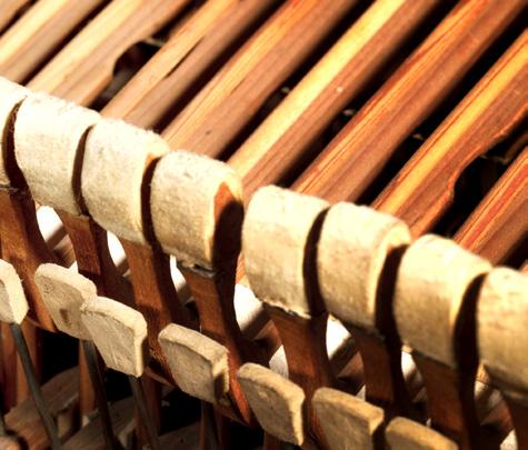 AG: Das machen übrigens die Kiele aus Vogelfedern besser als die heute meist verwendeten Kunststoffe wie Delrin oder Celcon, moderne Plastikarten, die unter anderem auch in der Raumfahrt verwendet werden … aber beim Cembalo sind die Federn einfach besser.