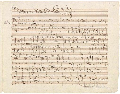 Beginn des Kopfsatzes in Schuberts Skizzen zur Sinfonie D-Dur, 1828