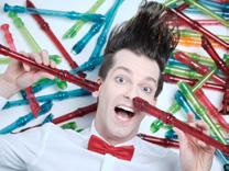The Fluteman Show zeigt mit Witz und Charme ganz neue Facetten der Blockflöte auf und der Fluteman wird dabei nicht nur auf einer Leopardenbassflöte spielen, sondern sogar auf fünf Flöten gleichzeitig. Bei rasender Geschwindigkeit bietet das Perkussionsensemble