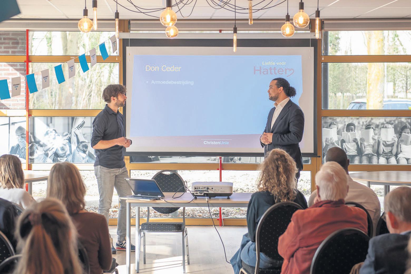 Na het welkomstwoord vertelde Hans Veltkamp over de achtergrond van de plannen. Hij en zijn zus Lienke groeiden op in Hattem in een middenstandsgezin. “Onze ouders waren maatschappelijk betrokken en hebben ons dat ook meegegeven. Inmiddels zijn we ouder geworden en hebben we meer verleden dan toekomst. We zijn aan het afbouwen,” vertelde Veltkamp. Juist daarom willen zij nog iets blijvends bijdragen aan hun woonplaats.