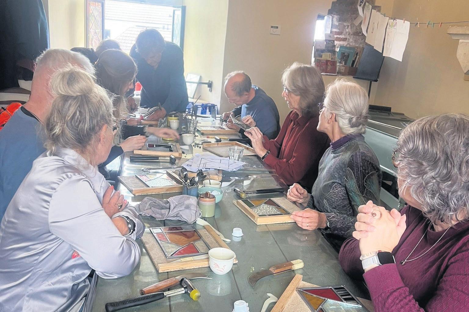 Onder leiding van vakdocent en ambachtelijk glas-in-loodmaker Chris de Goede gingen deelnemers aan de slag met het maken van hun eigen glas-inloodraam. Dijkpoort beheerder Edith de Jong zorgde voor de ontvangst en organisatie.