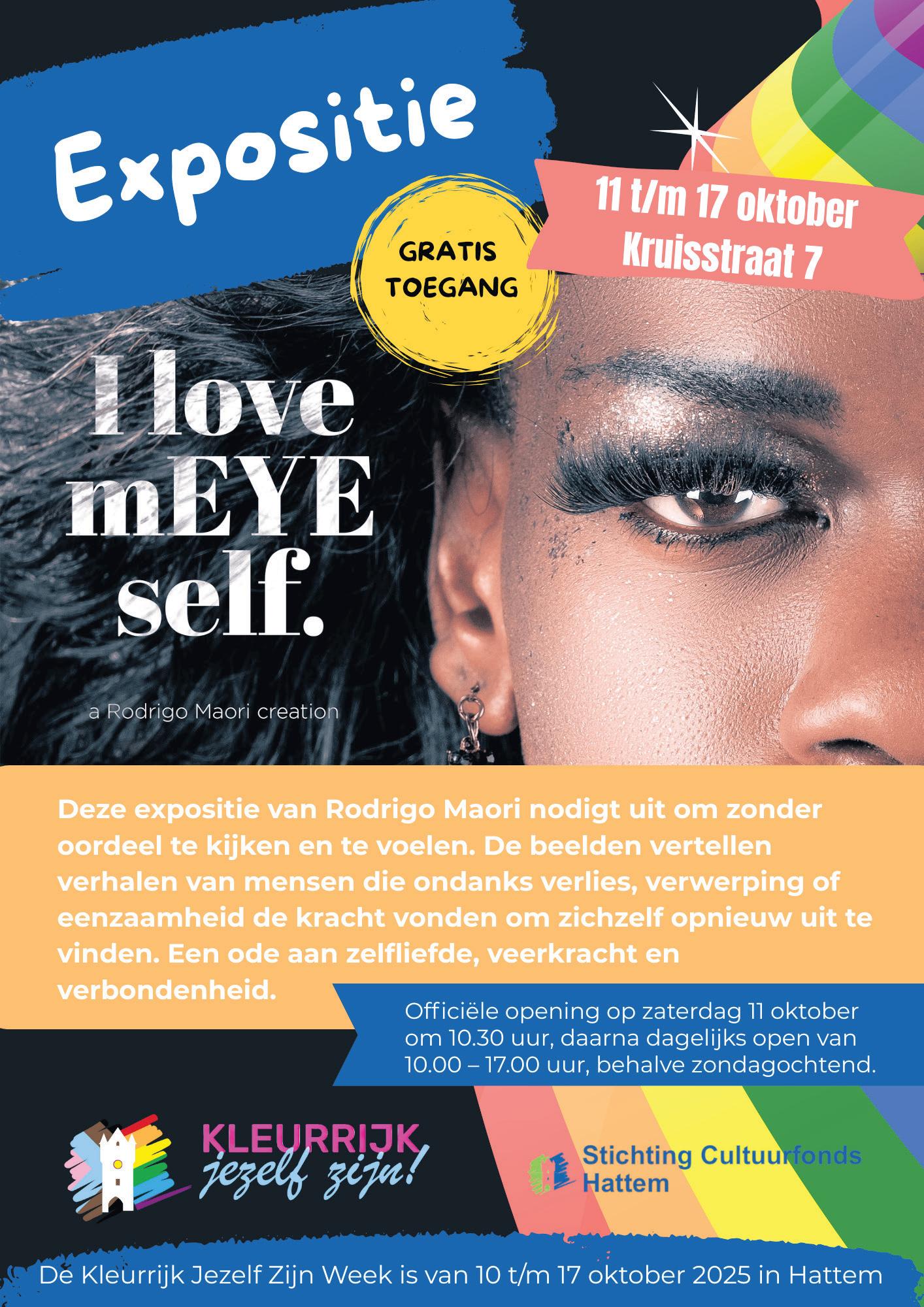 De officiële opening vindt plaats op zaterdag 11 oktober om 10.30 uur aan de Kruisstraat 7 in Hattem. De kunstenaar en een aantal van de modellen zelf zullen hierbij aanwezig zijn. I LOVE mEYE SELF – Elements of my Existence is meer dan een kunstexpositie: het is een uitnodiging om te kijken zonder oordeel, te voelen zonder
