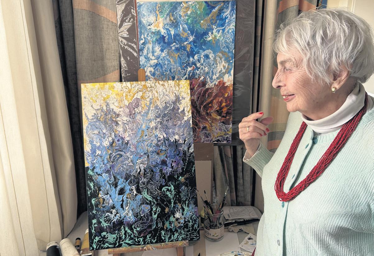 Fotobijschrift: Lilia Gabo: “Wanneer mijn penseel de verborgen figuren ontmoet, verdwijnt de tijd. Ik zie voortdurend nieuwe lijnen.”