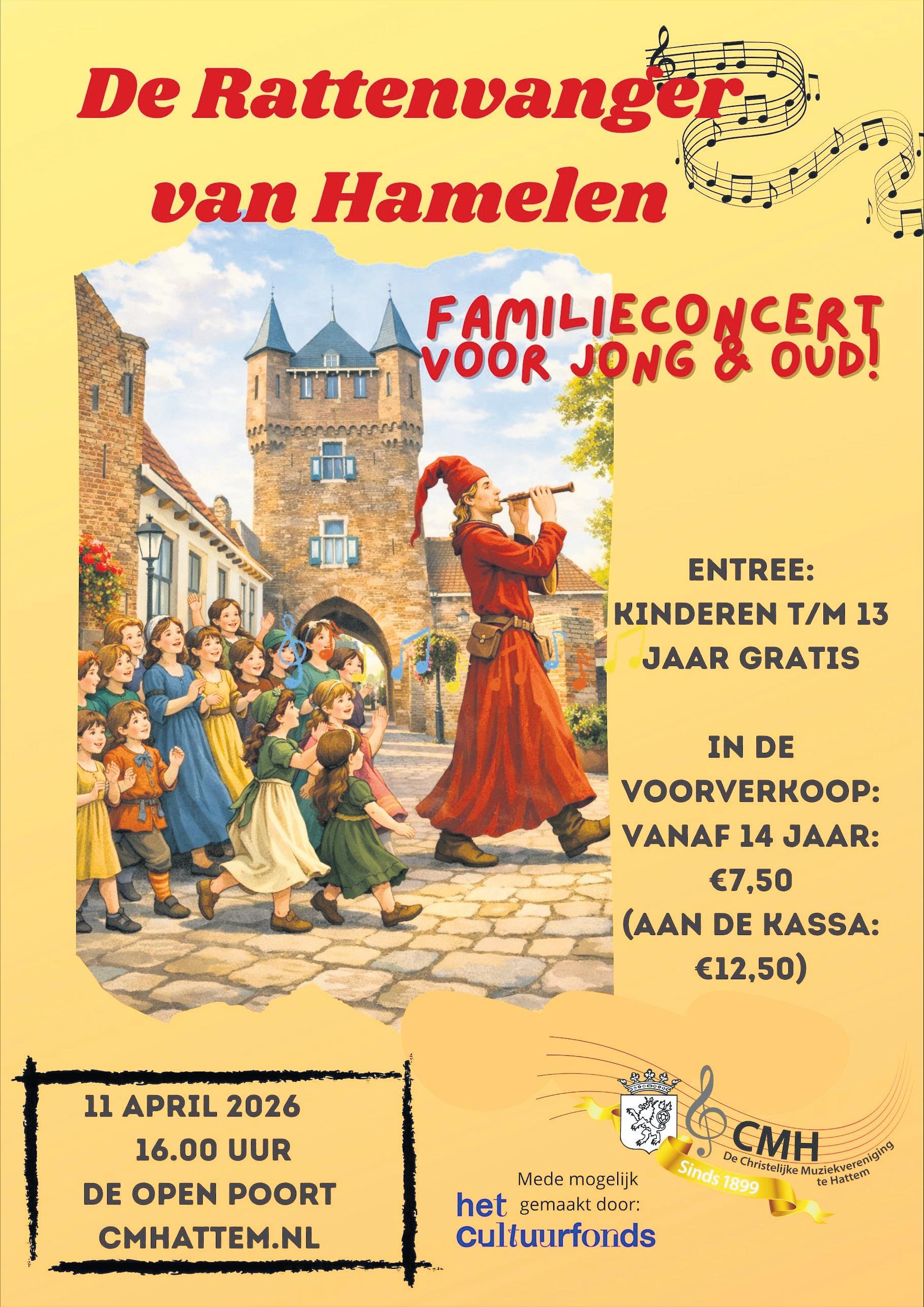 HATTEM - Zaterdag 11 april om 16.00 uur is het zover: het familieconcert van de Christelijke Muziekvereniging Hattem (CMH) in De Open Poort in Hattem.