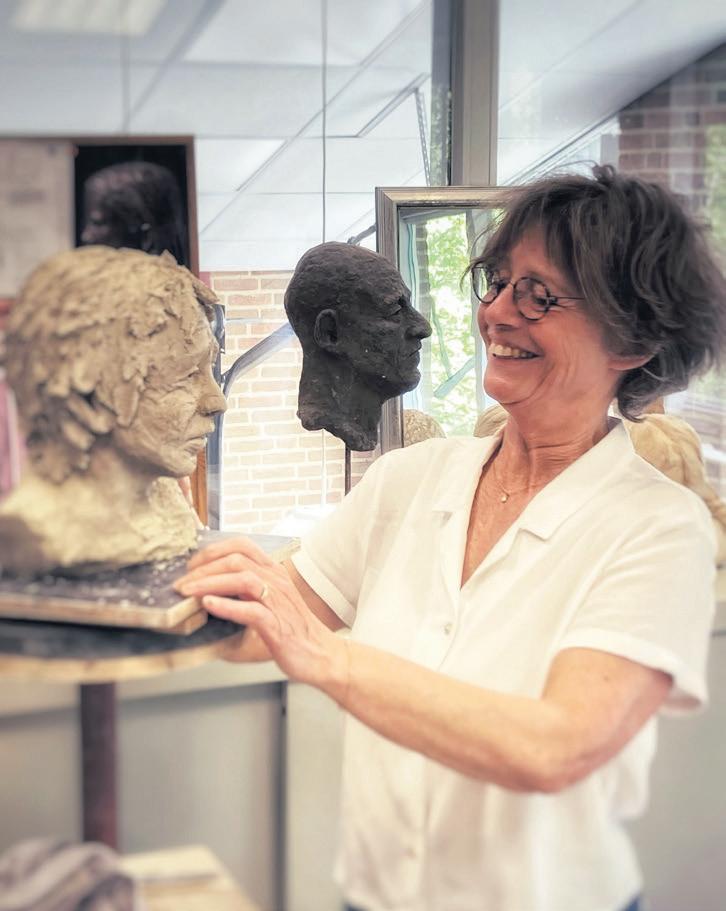 “Ik ontdekte overal verhalen en kleine figuren, verstopt op de meest onverwachte plekken,” vervolgt ze. “Waar de kleuren eerst de vrije loop hadden, fluisteren ze nu welke figuren er heimelijk schuilen. Met nieuwe technieken en lagen maak ik ze zichtbaar. Wie kijkt, ziet voortdurend iets nieuws.” eroen Bosch is een grote inspiratiebron. “Sinds ik mij jaren geleden in zijn complexe werk verdiepte, zie ik de wereld om me heen met een scherpere blik. De wereld stopt niet bij de eerste oogopslag,” vertelt ze gepassioneerd. “Een leeg wit doek is voor mij een canvas vol ongeschreven verhalen die wachten om omlijnd te worden.” Met een flinterdun penseel of een fijne pen haalt ze die verborgen figuren voorzichtig naar de oppervlakte. Het resultaat is