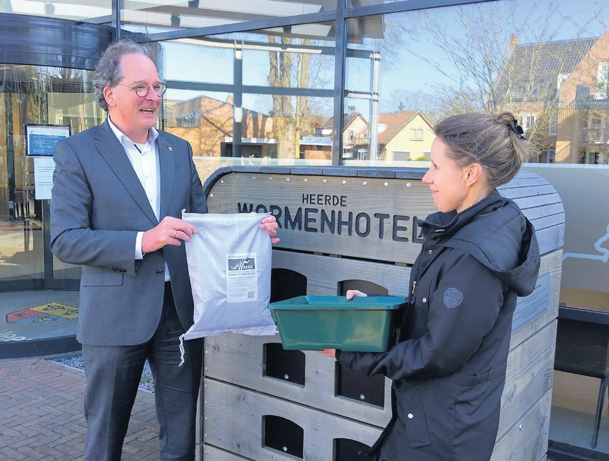 Op 1 april zijn er in het wormenhotel nieuwe frisse gasten gearriveerd. Samen met wethouder Klaas Harink bracht initiatiefneemster Gertine van Weezel het hotel weer tot leven. Het wormenhotel staat sinds begin 2022 naast het gemeentekantoor aan de Eperweg. Het draagt bij een circulaire wereld waar we als gemeente Heerde graag ons steentje aan bijdragen.