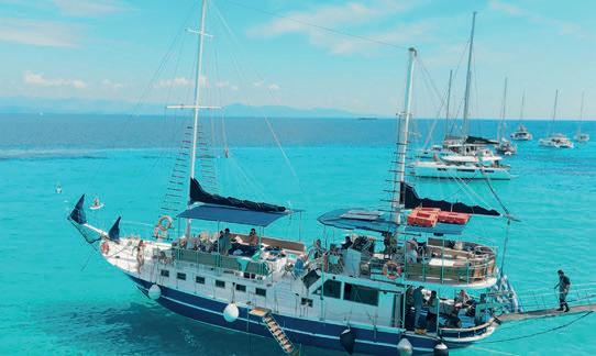 Kira und Flo flogen bereits nach der standesamtlichen Hochzeit nach Griechenland, um sich dort einige Locations für die Hochzeit anzusehen und sich mit den Weddingplannern zu treffen. Diese Etappenplanung zahlte sich aus, denn spontane Herausforderungen – wie der Motorschaden des Bootes für das Pre-Event und ein Venue-Wechsel – konnten schnell gelöst werden. Auch ihr Kleid hatte sich Kira bereits 2021 ausgesucht: „Leider hatte ich damit nie so einen richtigen ,Kleidmoment’, darum habe ich mich nochmal auf die Suche begeben und im Geschäft ,Verborgene Schönheiten’ zusammen mit meiner Mutter und meiner Trauzeugin Sonja mein absolutes Traumkleid gefunden.” Flo wurde hingegen bei seiner Maßschneiderei des Vertrauens Rooks & Rocks fündig.