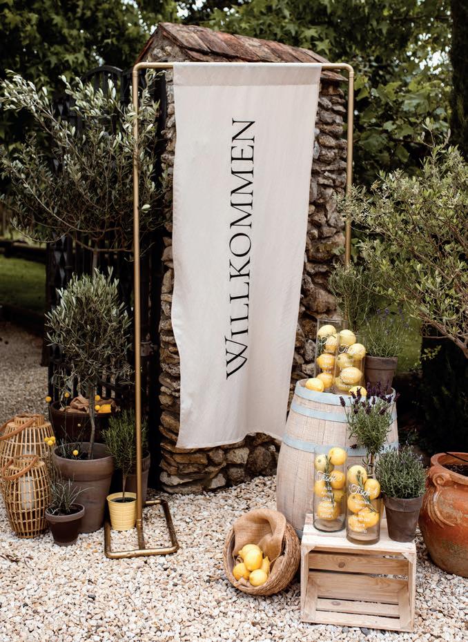Die Papeterie hebt die ländliche Atmosphäre noch einmal hervor. Mit Zitronen- und Lavendelmotiven sowie liebevollen Details wie kleinen Illustrationen fügt sie sich perfekt in das rustikale Hochzeitskonzept ein. Die fruchtigen Designs wirken frisch und lebendig und verleihen der Feier einen mediterranen Touch.