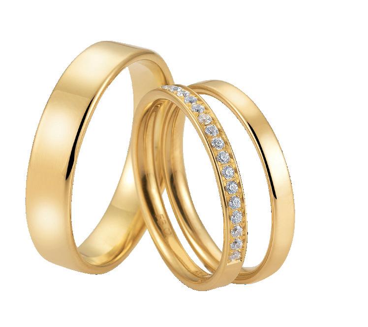 Ein zeitloses Profilpärchen wird bei diesem Triset in 585er Gelbgold mit einem zarten Memoire-Ring ergänzt. Auf dem Memoire funkeln 21 Diamanten in 0,21 Karat. Ihr könnt den Profil-Ring und den Memoire-Ring von Breuning kombinieren, wie ihr wollt, denn die Schmuckstücke lassen sich zusammen an einem Finger, aber auch einzeln tragen.