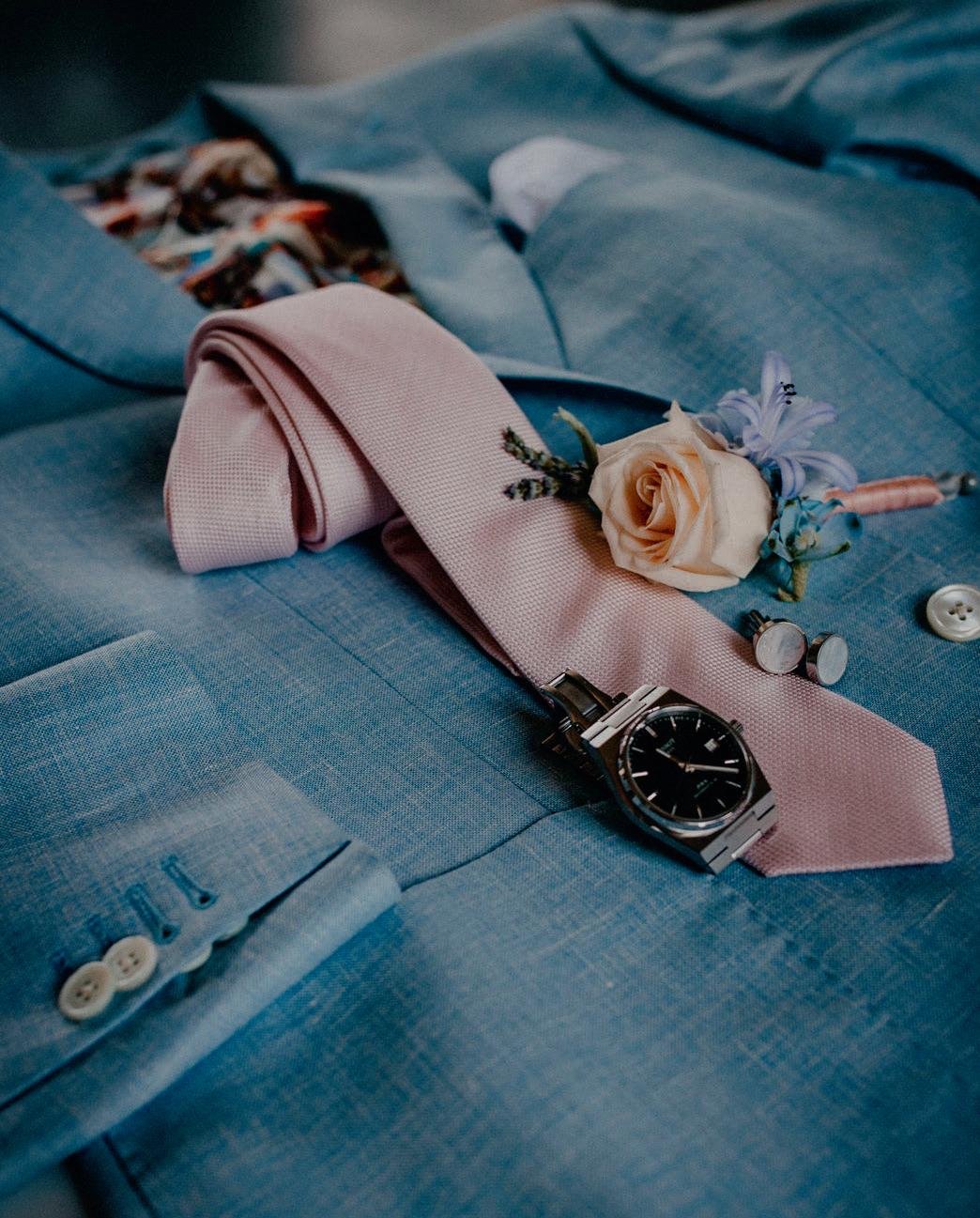 Ein Hochzeitsfotograf beim Getting-ready ist ein echtes Must-have. Er fängt nicht nur die lockere Stimmung ein, sondern hält auch stilvolle Detailaufnahmen fest: Parfüm, Fliege oder Krawatte, Manschettenknöpfe, Uhr und Schuhe sind schöne Motive und sorgen für stimmungsvolle Hochzeitsfotos.