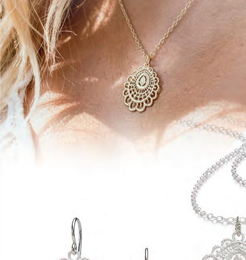 hänger „Anthea“ aus 925 Silber in einem Wert von 460 €. Das Spitzenmotiv ist von floralen Stoffen inspiriert und mit außergewöhnlicher Liebe zum Detail umgesetzt. Der Name „Anthea“ bedeutet „göttliche Blume“ und spielt auf die Blüten- und Blätterelemente an, die bei diesem Design bezaubern.