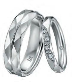 Dieses Trauringpaar symbolisiert den schimmernden Schwung, den die Liebe in das geradlinige Leben zweier Menschen bringt. Die Ringe bestehen aus einer eigenkreierten Goldlegierung, dem „Champagner-Rose“, kombiniert mit feinstem Weißgoldrand und Diamanten. www.bilz-goldschmiede.de