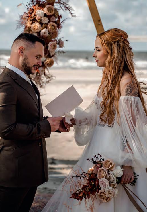 Schnell war für die beiden klar, dass die Hochzeit in Kapstadt stattfinden sollte. Da das für viele Gäste eine lange Anreise bedeutete, verschickte Lina bereits ein Jahr vor der Trauung Save-the-DateKarten an die 75 Gäste. Für den Start in ihr gemeinsames Leben versprachen sich Lina und Chris drei Grundsätze: 1. Die Hochzeit soll nicht der schönste Tag ihres Lebens sein; 2. Es gibt ein Maximalbudget, an dem nicht gedreht wird und 3. Die Planung der Hochzeit soll Spaß machen. Zusammen mit der südafrikanischen Designerin Estelle Visser, mit der Chris zufällig zur Schule gegangen ist, entwarf Lina ihr Hochzeitskleid. Elegant und zeitlos sollte es sein, mit einem kleinen Twist. Die pinke Blumenstickerei, angelehnt an die südafrikanische Wildblume Kosmos, die überall wächst und ihren Platz finden kann, spiegelte Linas Persönlichkeit dabei perfekt wider.