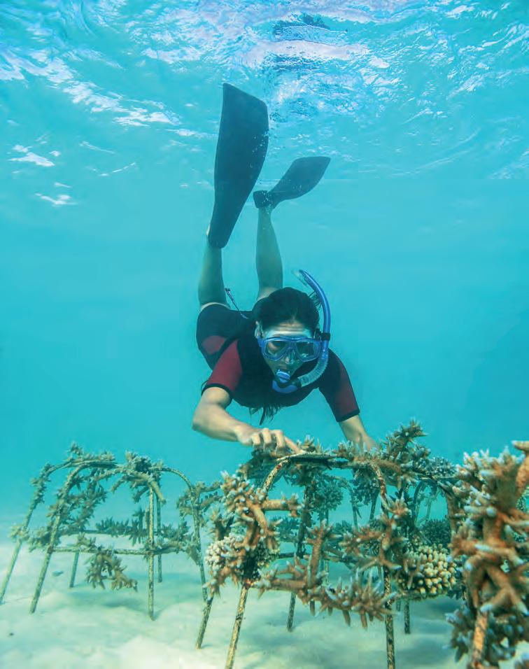 Im exklusiven Baros Maldives Resort könnt ihr ganz aktiv am Meeresschutz teilnehmen: Neben der einmaligen Möglichkeit, gemeinsam mit Meeresbiologen Korallen zu pflanzen, an Fischbestimmungskursen und geführten Schnorchelausflügen am Tag und bei Nacht teilzunehmen, lässt sich der Ozean auch bei einer romantischen Bootsfahrt in den Sonnenuntergang entdecken