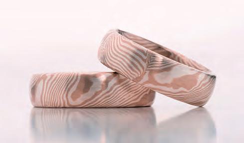 In der japanischen Schmiedekunst Mokume Gane entstehen Eheringe mit einzigartigen Mustern: Edelmetalle werden verschweißt und kunstvoll bearbeitet. Mokume-Saar hat sich auf diese Technik spezialisiert und fertigt individuelle Unikate mit Handgravur. www.mokume-saar.de