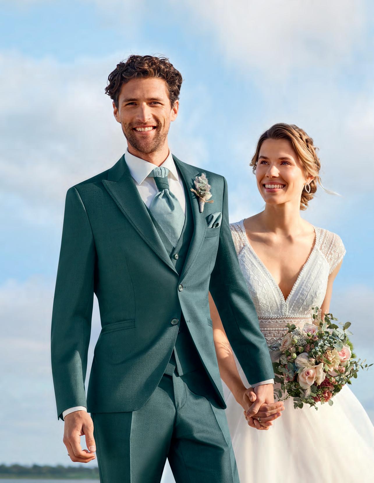 Groen, groener, groenst! Of in dit geval: de meest trendy trouwpakken. Of het nu weelderig dennengroen, modern eucalyptusgroen of fris mintgroen is – het kleurenspectrum is groot, zodat elke bruidegom zijn ideale tint groen op de bruiloft kan dragen. Deze natuurlijke kleuren zorgt voor rust, mix en match verschillende tinten of kies een speelse print voor een moderne touch.