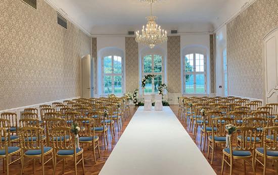 Traumhochzeit auf einem Schloss. Seine majestätische Kulisse in den sanften Hügeln mit Blick über Wien macht das Schloss Wilhelminenberg zum wahren Hochzeitsprofi.