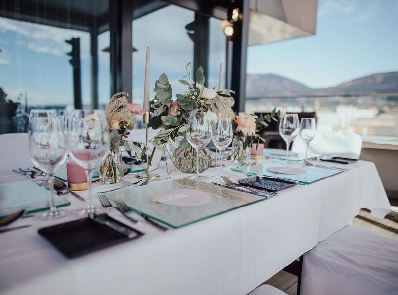 Wer träumt nicht davon, am Tag der eigenen Hochzeit auf Wolken zu schweben? Das Panoramarestaurant im 15. Stock ist der ideale Ort, um das perfekte Glück im modernen Ambiente zu feiern.