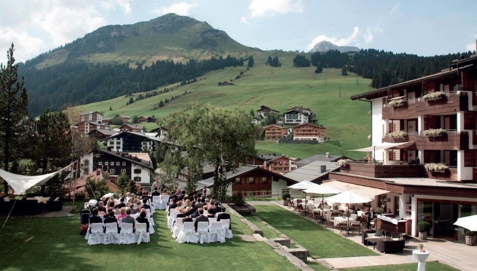 Inmitten der zauberhaften Arlberger Berglandschaft ist der Berghof die ideale Location für Ihre Traumhochzeit. Das Hotel befindet sich im Herzen von Lech, in unmittelbarer Nähe zur malerischen Alten Kirche. Die standesamtliche Trauung kann entweder im romantischen Garten oder im festlichen Innenbereich stattfinden. Der wunderschöne Festsaal mit Tanzfläche und angrenzender Bar bietet Platz für bis zu 120 Gäste. Der Berghof bietet individuelle Hochzeitspakete an, um Ihre Traumhochzeit ganz einfach und planbar nach Ihren Vorstellungen zu gestalten. Vom Blumenschmuck bis zur Hochzeitstorte aus der eigenen Patisserie kümmert sich das Team um jedes Detail, um Ihren Tag unvergesslich zu machen. Die Hochzeitsnacht ist kostenlos.