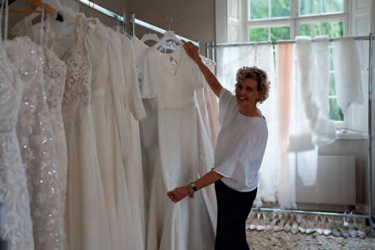 Hoofd redactrice Susan hangt alle jurken aan het rek, zodat de bruiden er op hun gemak doorheen kunnen neuzen.