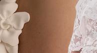 1. Het lijfje van deze jurk uit de Romance-collectie van Diane Legrand wordt niet alleen gekenmerkt door de zichtbare baleinen, maar ook door het intrigerende patroon van de miniparels en kralen. 2. Het semitransparante kant geeft deze clean chic zeemeerminjurk van Etoile een elegante twist.