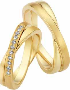 De harmonieuze verbinding van de twee ringschachten in deze set van Collection Ruesch vertegenwoordigt de band tussen twee liefhebbende mensen en maakt ze tot iets heel bijzonders. De in elkaar gedraaide ringen zijn gemaakt van 14-karaat geelgoud en hebben een glanzende én matte finish. De damesring heeft 11 diamanten gezet in het kanaal.