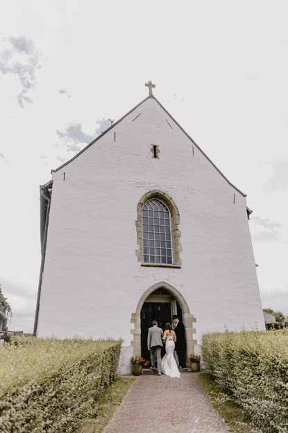 De ceremonie vond plaats in een wel heel bijzondere kerk. Namelijk het plaatselijke kerkje waar de grootouders van Sebastian elkaar ooit het jawoord hebben gegeven. “In dat kerkje trouwen was voor mij een mooi eerbetoon aan mijn overleden grootvader. Het voelde alsof hij er toch een beetje bij was”, vertelt Sebastian. Rikke: “Wij vonden het leuk om onze bruiloft persoonlijk te maken en vroegen onze familie en vrienden om de trouwceremonie in elkaar te steken. Wij hadden dus geen idee wat er allemaal gezegd zou worden.” Sebastian: “De kerkdienst was voor mij het hoogtepunt van de dag, vooral de speeches van alle mensen.”