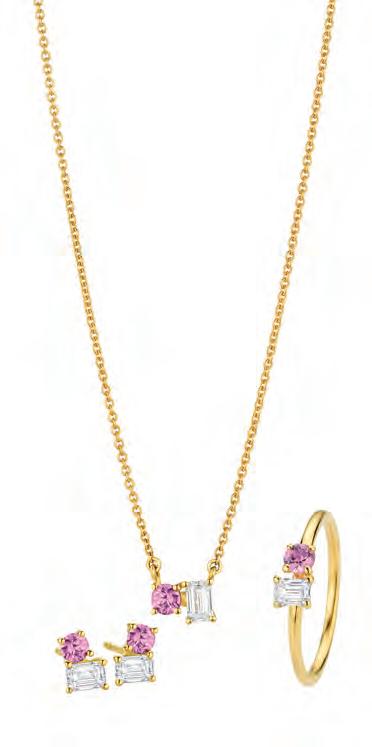 Du und ich: Zwei Herzen, die zueinander finden und unterschiedlicher nicht sein können, übersetzt in Schmuckstücke von Dettinger Schmuck. Sie vereinen zwei unterschiedliche Schliffe oder Steinarten. Bei diesem Ensemble aus Ohrringen, Kette und Ring treffen Diamanten auf Saphire.