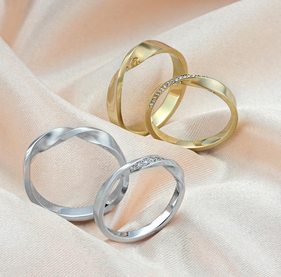 Diese Ringe haben Charakter! Die Twist-Trauringe verbinden echtes Goldschmiede-Handwerk mit langjähriger Erfahrung in der Trauringproduktion. Jeder Ring wird ein- bis zweimal von Hand gedreht – spürbar einzigartig, sichtbar präzise. Für den besonderen Glanz sorgt feinste Fassarbeit: Diamanten werden mit höchster Sorgfalt gesetzt – millimetergenau und voller Leidenschaft.